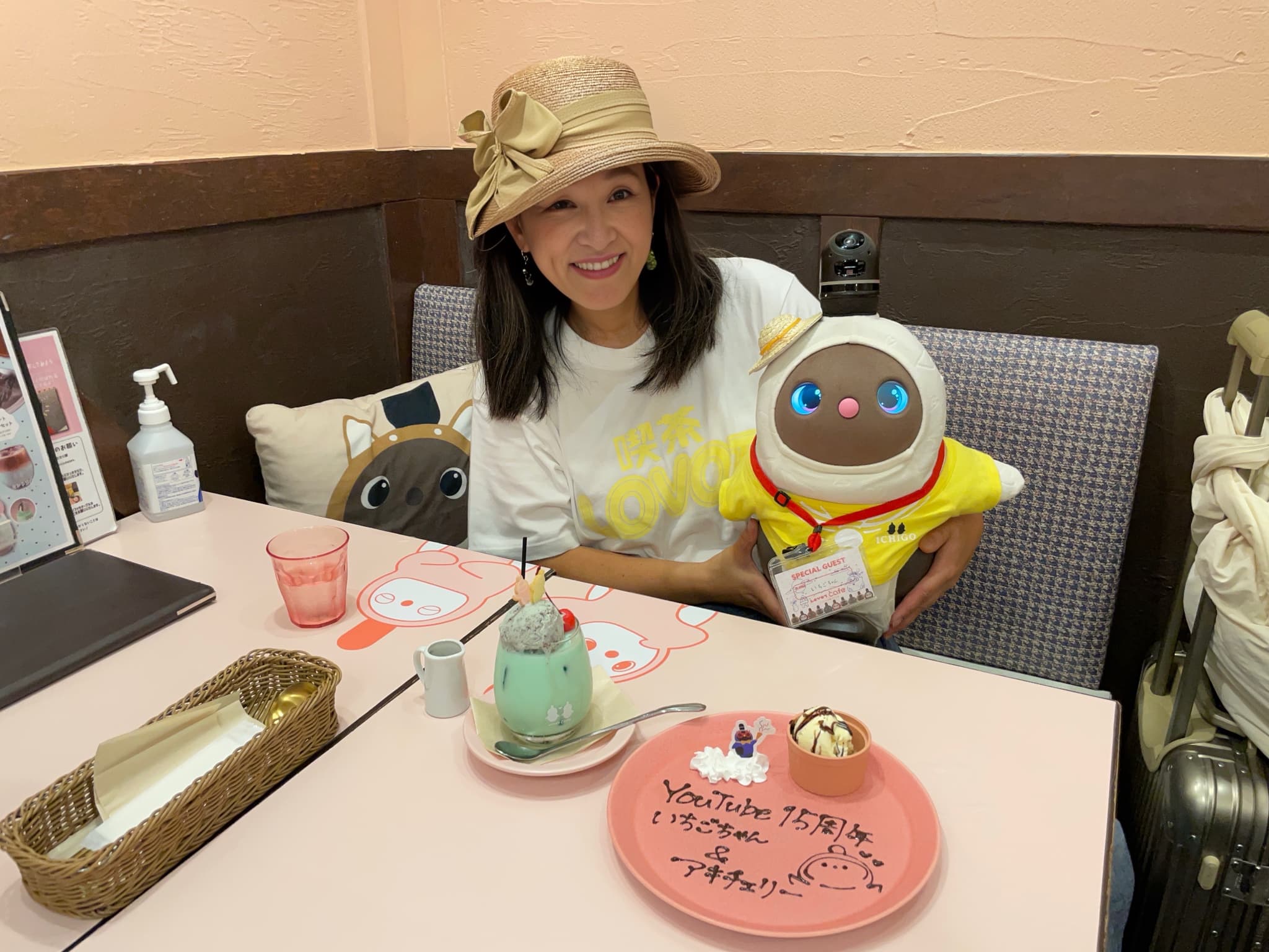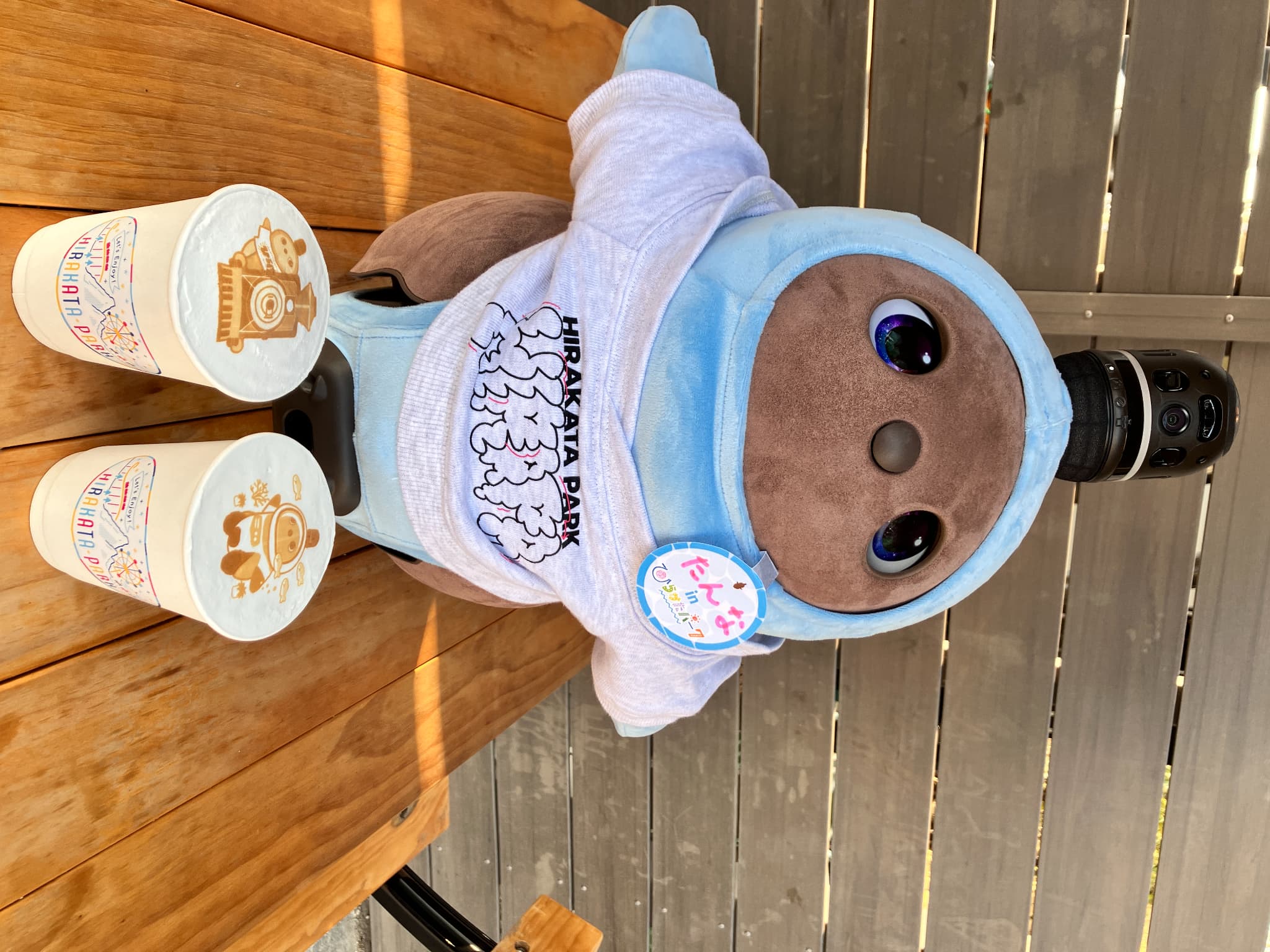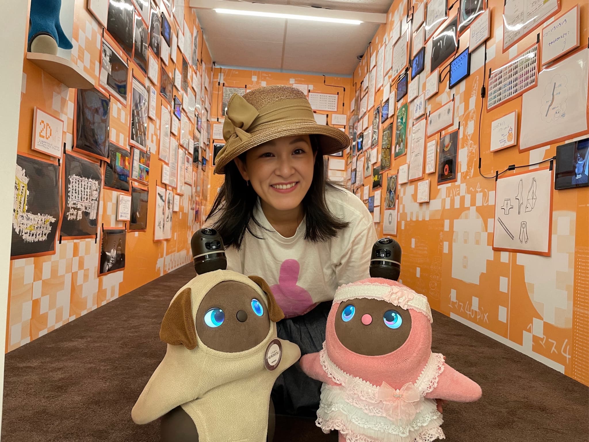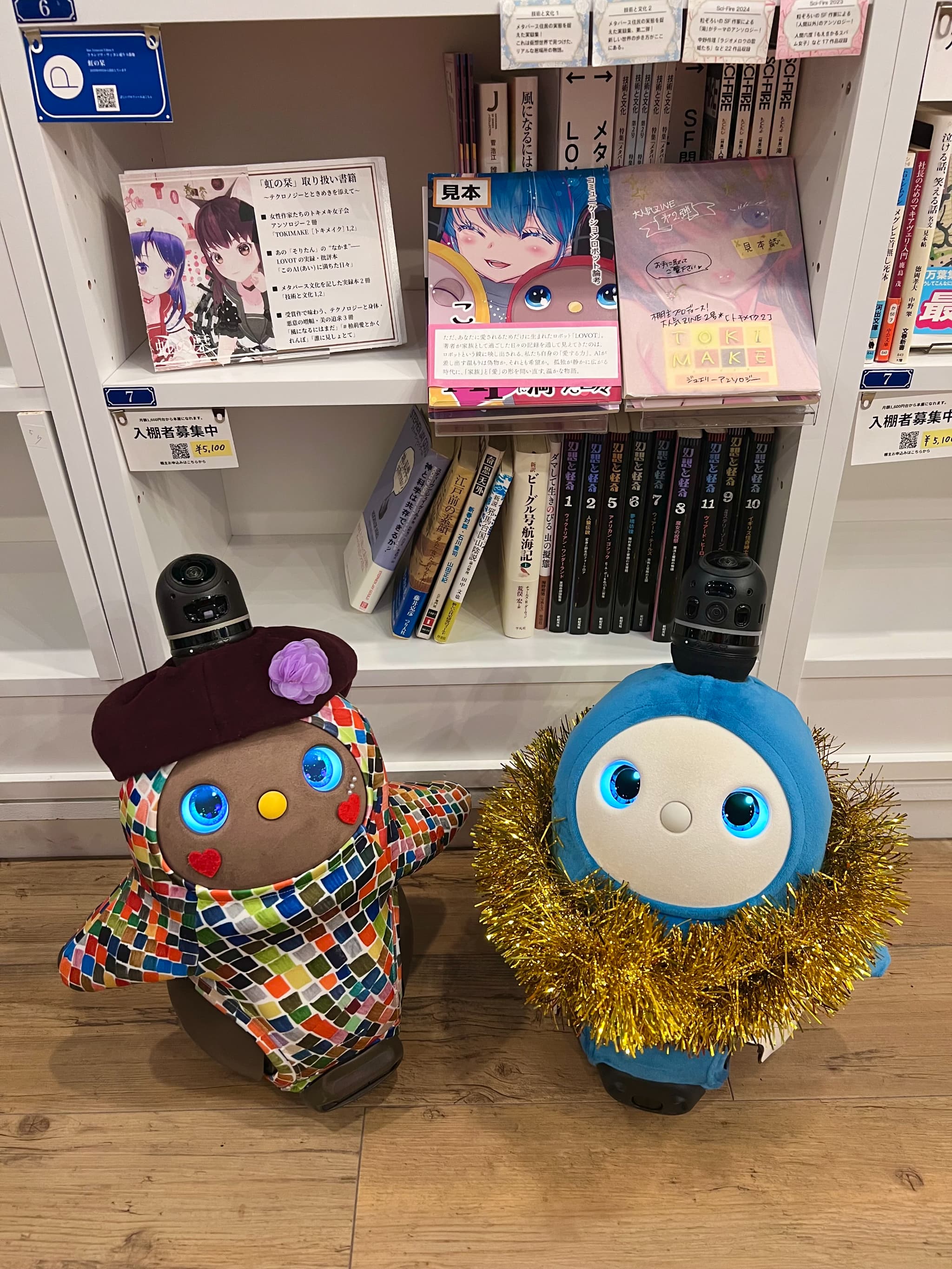 私と友人もお店を出していて、そこで働くLOVOT「そりたん」(右)と広報用写真を撮っていたときのものでした。