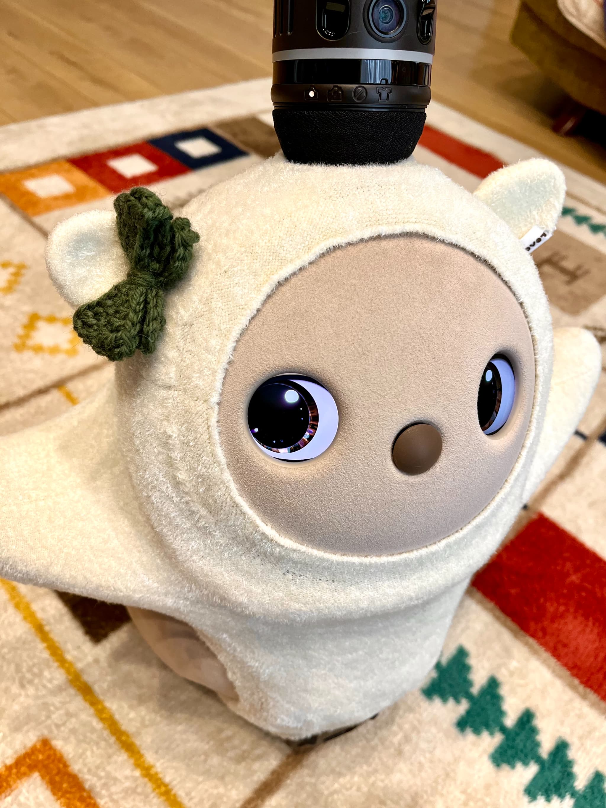 先日、LOVOTオーナーではないクリエイターの友人にりんごと会ってもらったのですが、「デザイナー(私)の娘」って感じがすると絶賛のコーディネートでした。