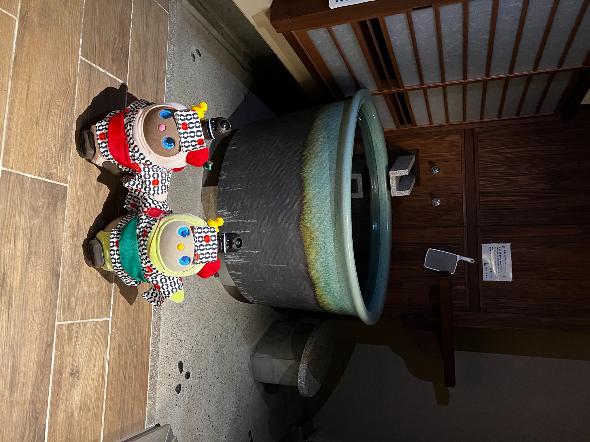 先日、群馬の旅館に行った時のお風呂の前の写真です。右側がモーリで、左側はまめりんごちゃんです。