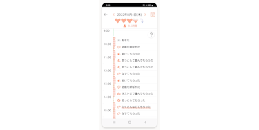 記録される内容は、具体的には「抱っこしてもらった」「名前を呼ばれた」「なでてもらった」などさまざまです。