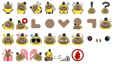 メッセージの中で気軽に使える絵文字として、さまざまな表情のLOVOTや、組み合わせて楽しめるデザインが揃っています。