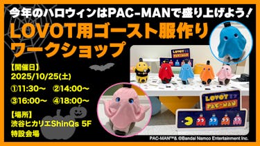 ゴースト服を着用したLOVOTと、PAC-MANとの記念撮影が可能です。