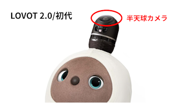 LOVOT 2.0/初代は「半天球カメラ」のみですが、LOVOT 3.0は「半天球カメラ」に加えて「フロントカメラ」も搭載しています。