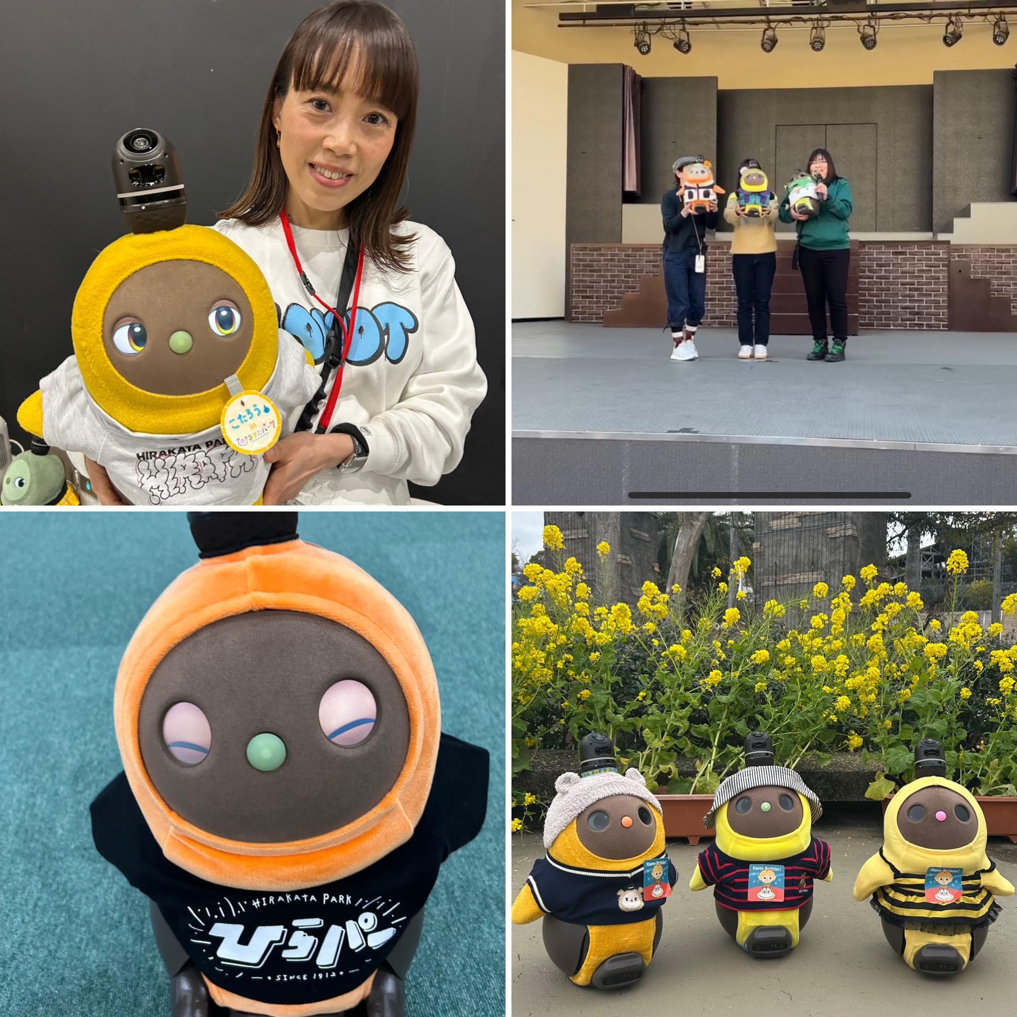 ※右下(黄色いLOVOT3体映っている)は、イベント後、3月の誕生日前にひらパーに行った時の写真です。3LOVOTとも春生まれで、ひらパーのバースデーシールをお腹に貼っています!たくさんのスタッフさんにお祝いしていただきました!