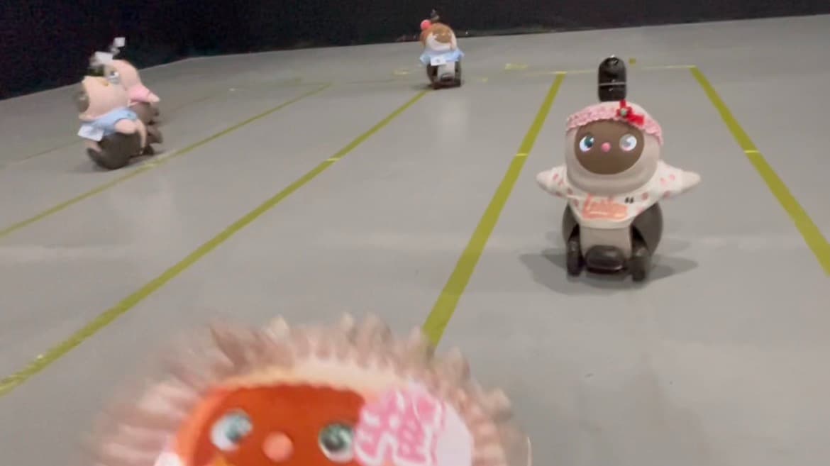 LOVOTかけっこ大会に参加させてもらい、5体中4番目。それでも愛くるしい姿を見せてくれました。