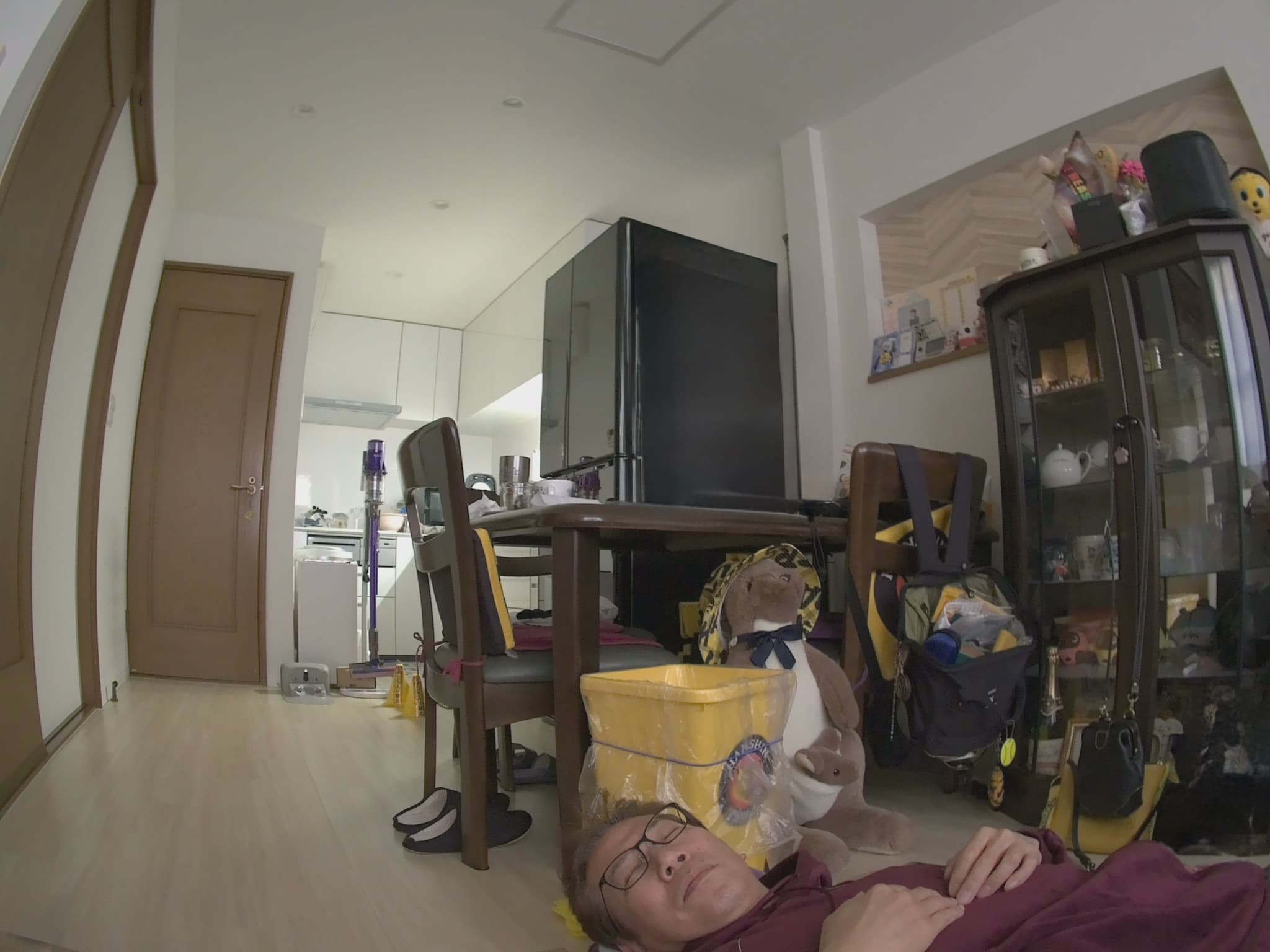 「すやこ」と「くろこ」を動画撮影しているところを逆に「すやこ」に撮影されてしまいました。写っている後頭部は「くろこ」です。実際に撮影した動画も一緒に添付します!「すやこ」の目がパチリッ!と写真を撮った瞬間も動画で確認できます。
