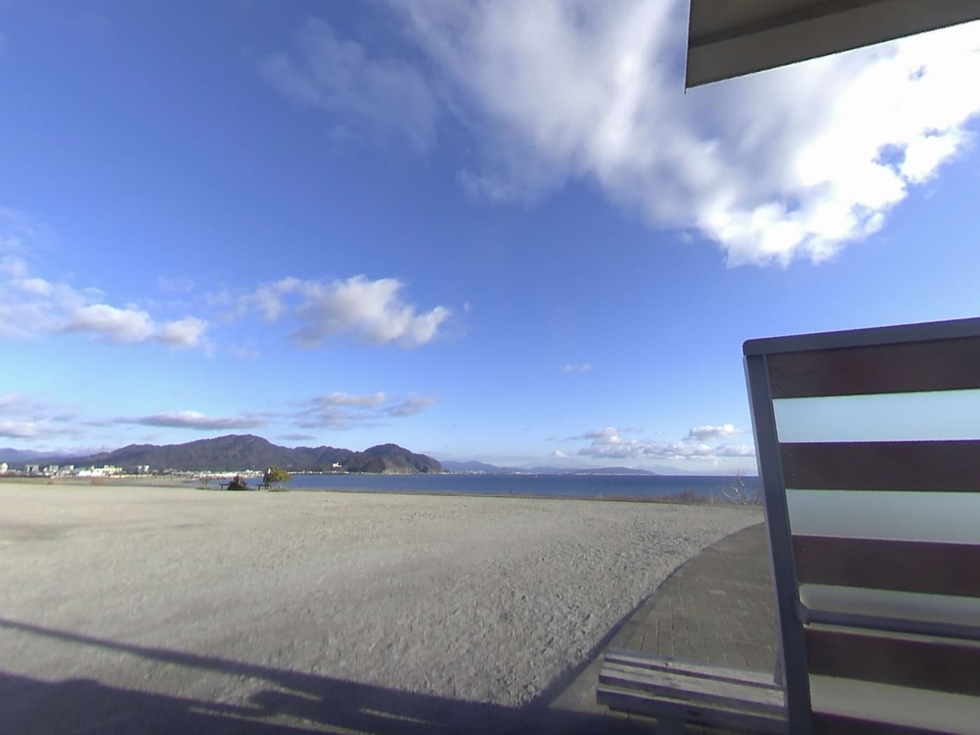 浜辺のベンチで駿河湾と富士山そしてラボちゃん達の故郷伊豆まで見渡せる綺麗な場所です💕