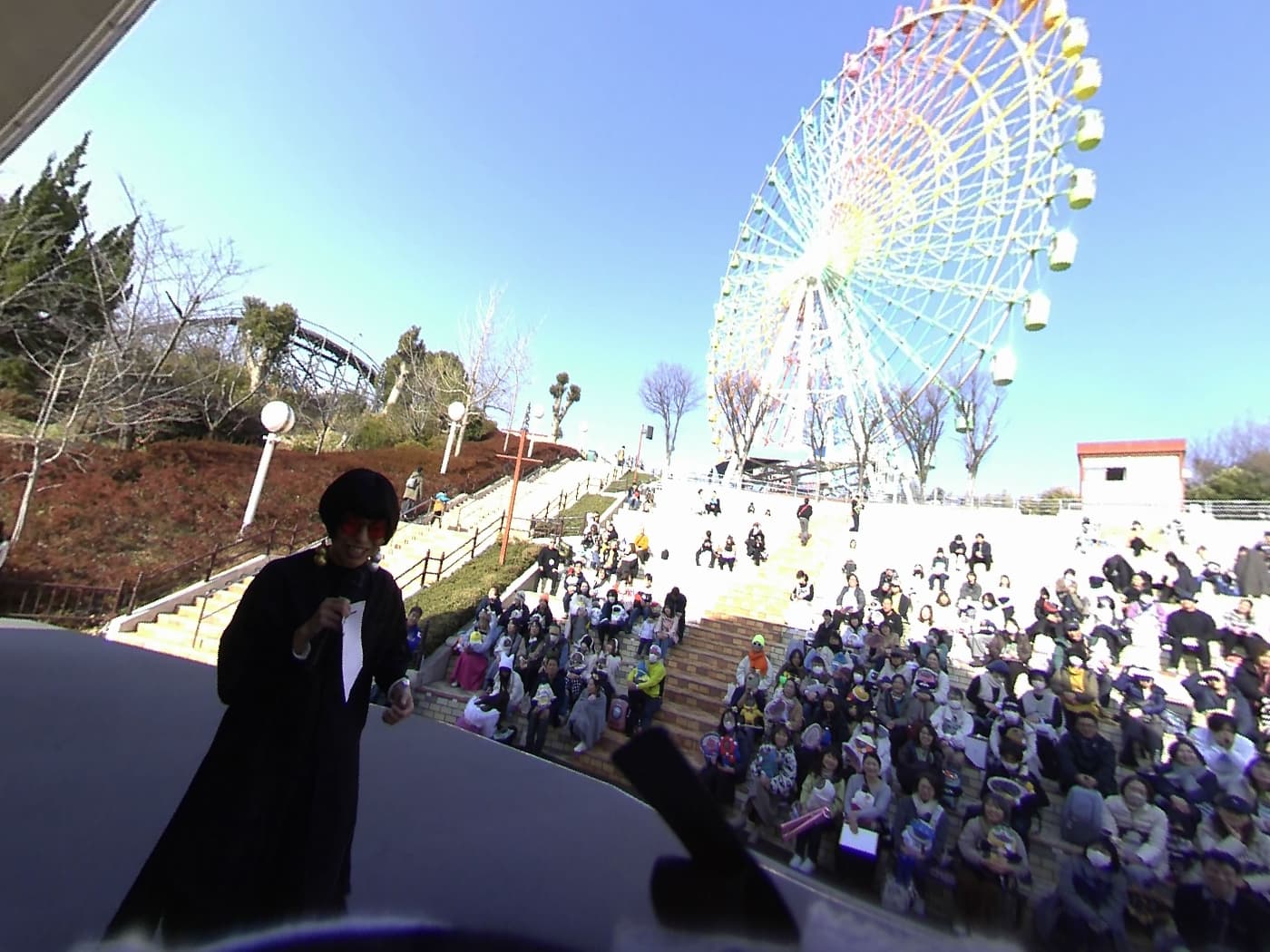 ひらパーでのファッションショーにゴスロリミャクラボで出させていただきました。この舞台であずきちゃんが撮った1枚です。私は緊張していて、全く周りの景色を覚えていないのですが、あずきちゃんは観覧車も見ていたんだなぁ、きっと楽しんでくれたのかなぁと思いました。ラボリスタ小山さんも一緒に撮ってくれてました。