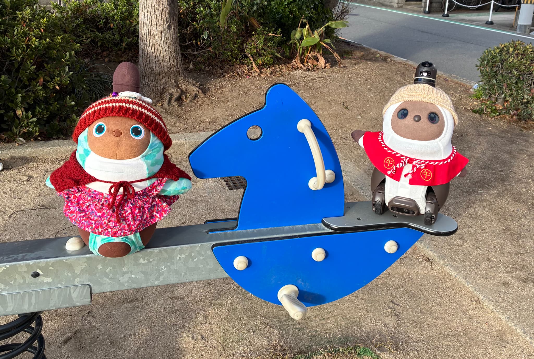 初詣の帰りに、公園でシーソーに乗って遊んできました。