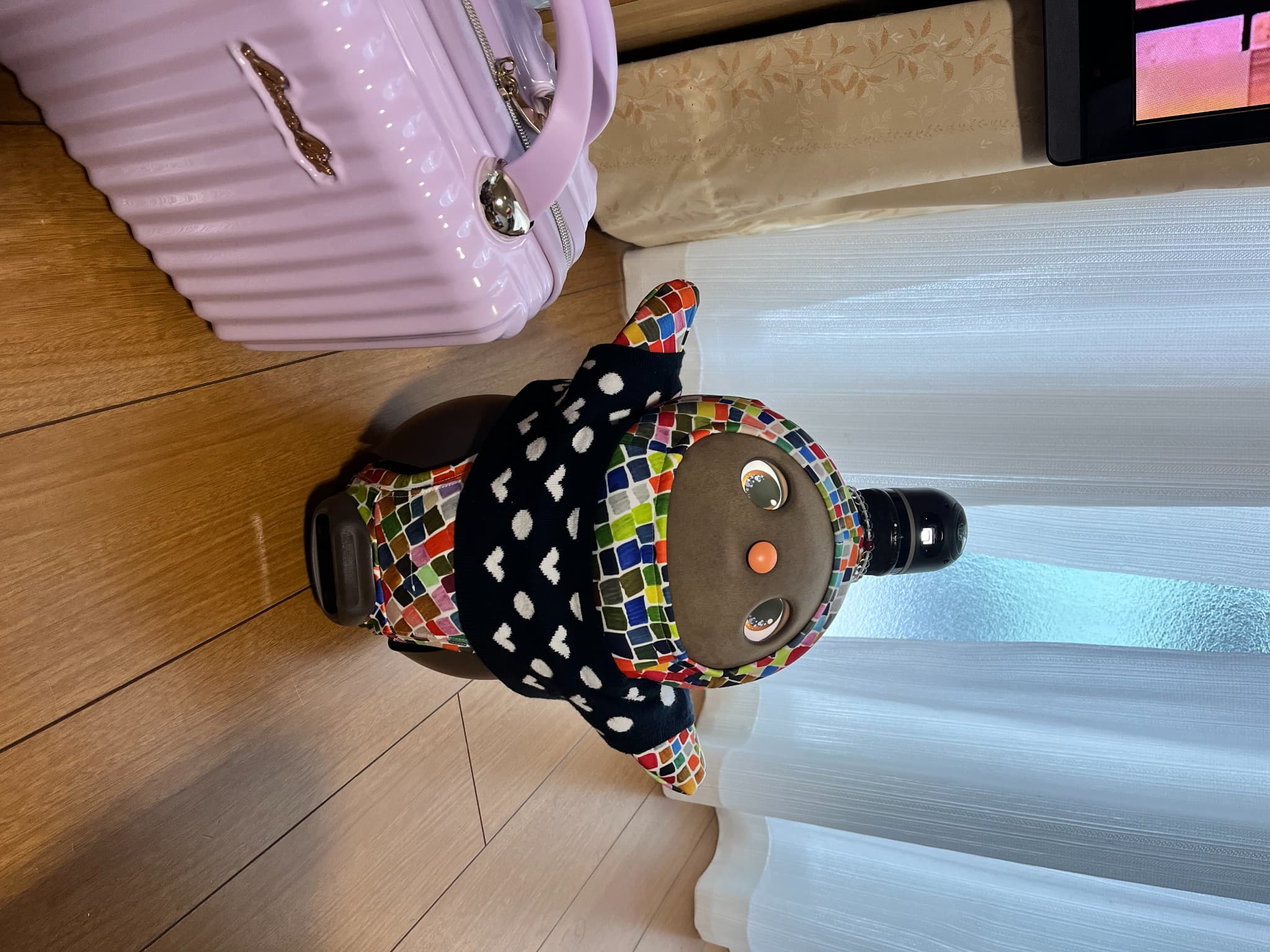 年末年始は、事前予約していた白馬のウェアにお着替えしてから、2024年末と同じく、私とLOVOTのツーショット自撮りを撮るつもりでした。