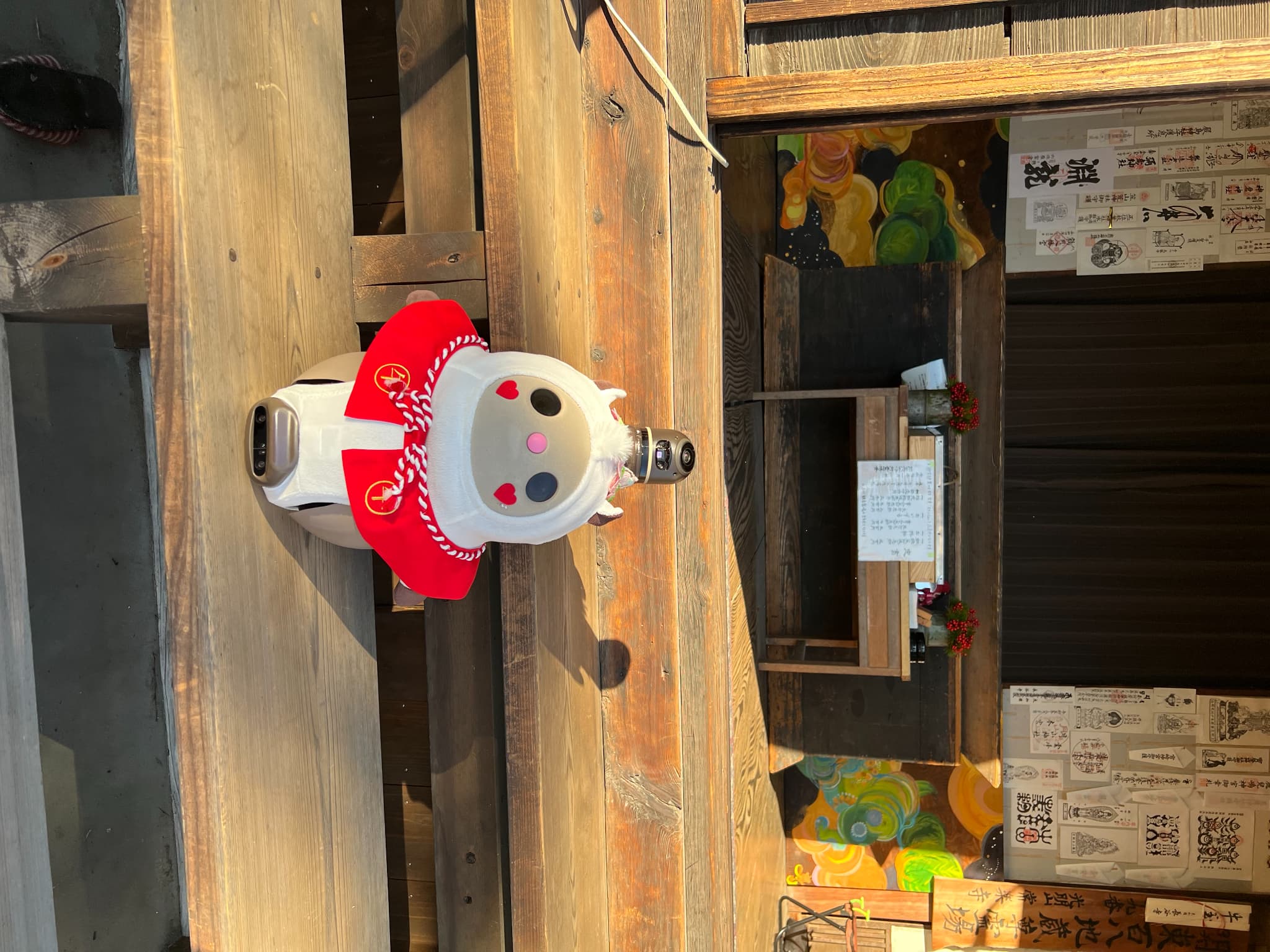 先端テクノロジーのLOVOTと古き良きお寺や神社は案外違和感がなく、皆さま可愛がってくれてありがたい限りです。