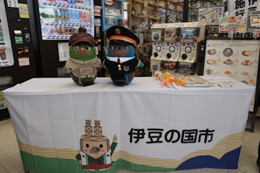 ツアーの最初の目的地は、伊豆箱根鉄道 伊豆長岡駅。“いずのくに特命大使”を務める「かのん」と「べりる」が特別衣装で登場し、それぞれ伊豆長岡駅の一日駅長、駅に併設するイズーラ伊豆長岡の一日店長として来場者をお出迎えしました。駅には「こども記念撮影コーナー」も設けられ、バスツアー参加者だけでなく家族連れや観光客で大いににぎわいました。この日のために用意された「かのん」「べりる」の記念名刺も配布され、伊豆の国市と『LOVOT』のつながりを感じられるイベントとなりました。