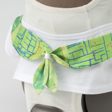 LOVOTウェア初登場となる、スカーフ付きTシャツ。主役となるスカーフが、LOVOT の胸元を華やかに彩ります。Tシャツは袖口をロールアップし、シンプルながらもおしゃれなデザインに。スカーフの魅力を引き立てるため、あえて引き算したスタイルに仕上げました。カラーは、ホワイトとブラックの2色からお選びいただけます。