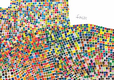 カラフルなシカクが描かれた、日常にアートを取り入れられるベースウェアが登場。作家の筆致まで表現したこだわりの一枚は、単体で主役になる存在感。レイヤードスタイルにも映える、着こなしの幅が広がる万能な一着です。
